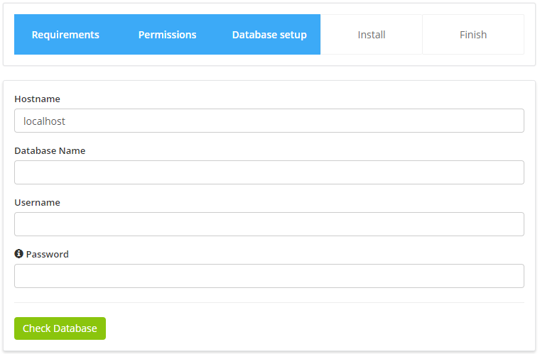 Click Check Database and if the database connection is successfully you will be passed to the latest step otherwise please re-check your credentials and hostname. (usually hostname is localhost but you should check with your hosting provider or cPanel)